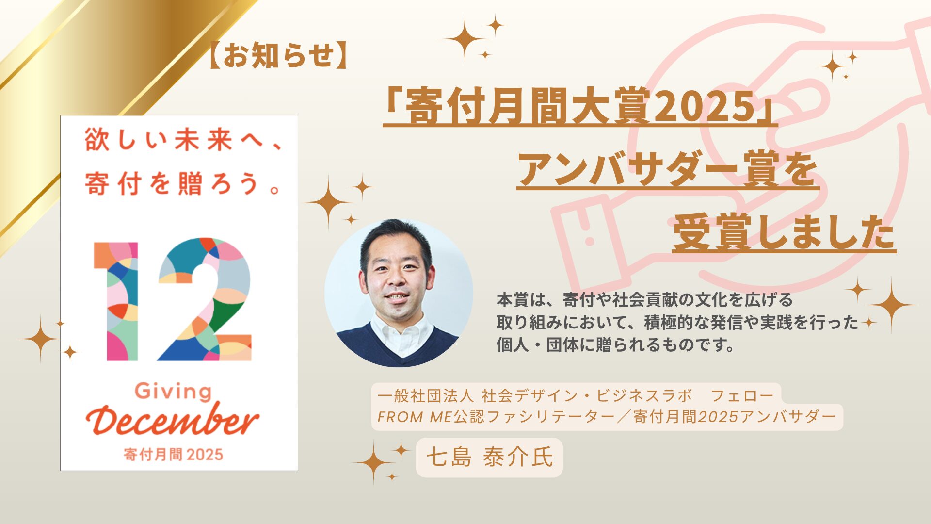 「寄付月間大賞2025」アンバサダー賞 受賞 -
