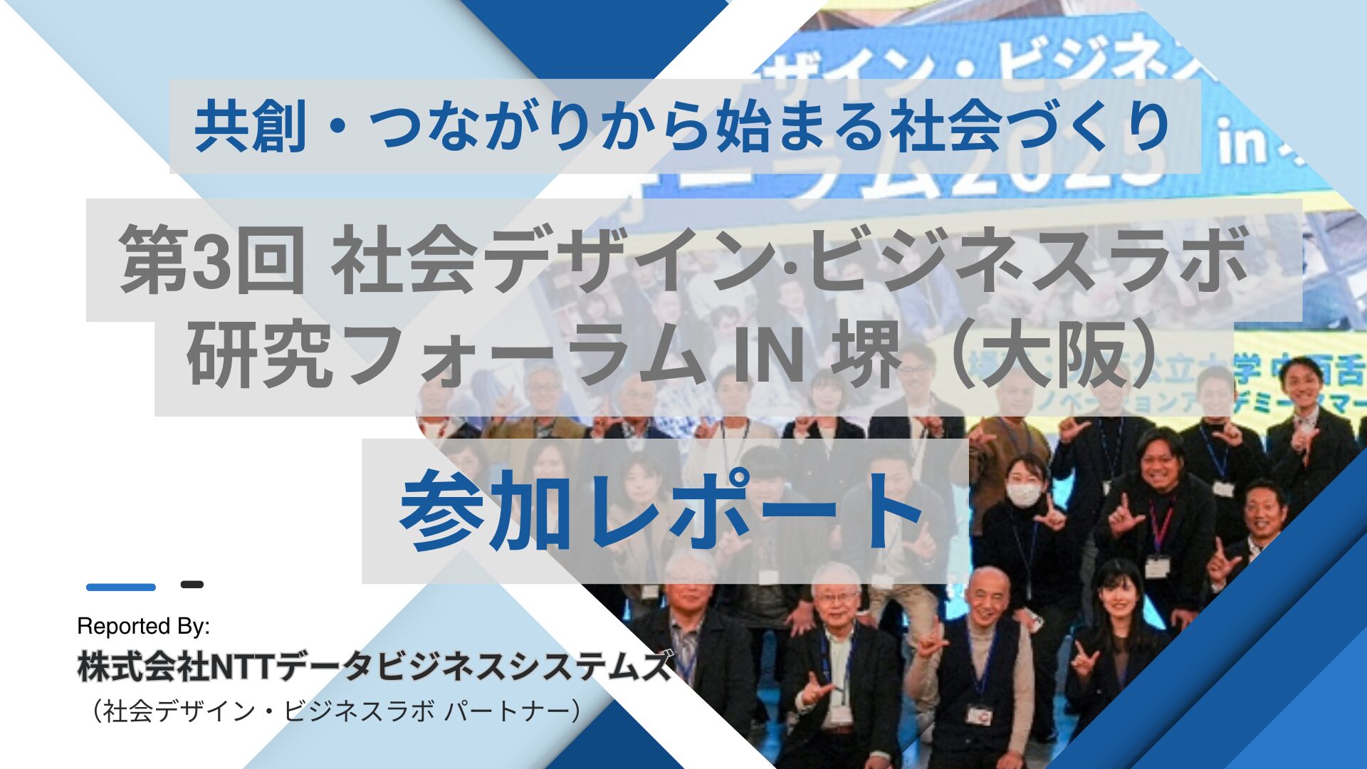 本フォーラムにおいて、社会デザイン・ビジネスラボのパートナー企業である株式会社NTTデータビジネスシステムズ様がご参加頂いており、当日の様子をまとめた参加レポートをご作成頂きました。許諾を得たうえで、本Webサイトへ掲載させて頂いております。