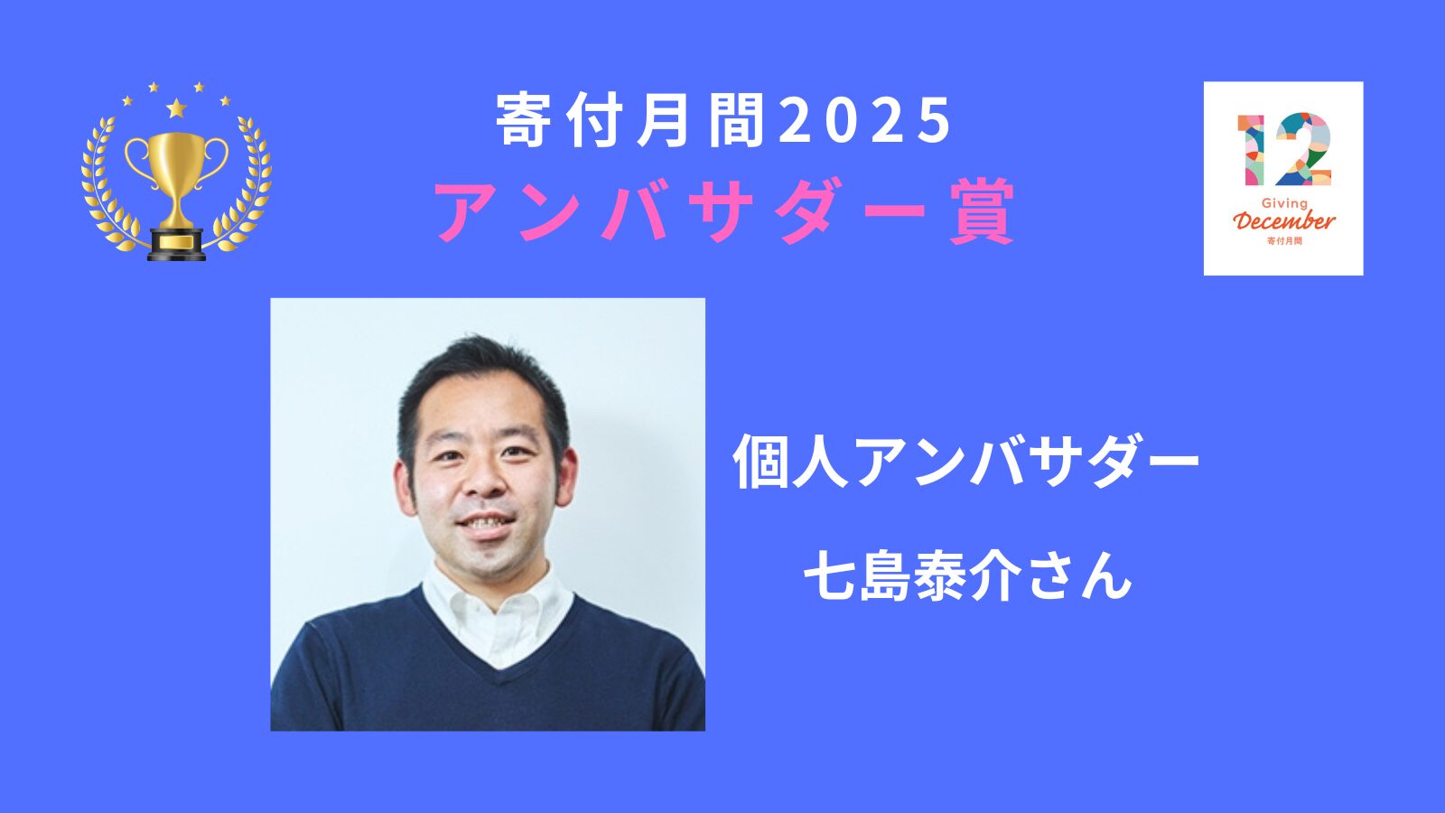 一般社団法人社会デザイン・ビジネスラボ(SDBL)のフェローである七島泰介氏が、このたび「寄付月間大賞2025」においてアンバサダー賞を受賞いたしました。