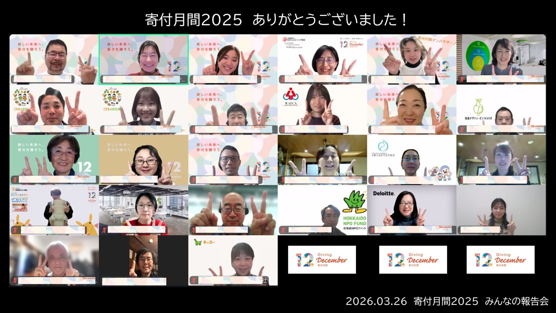 ・参加者:寄付月間に興味がある方ならどなたでも歓迎